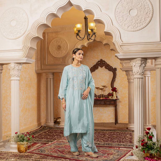 Icy Blue Breeze Cotton Embroidered Co-ord Set
